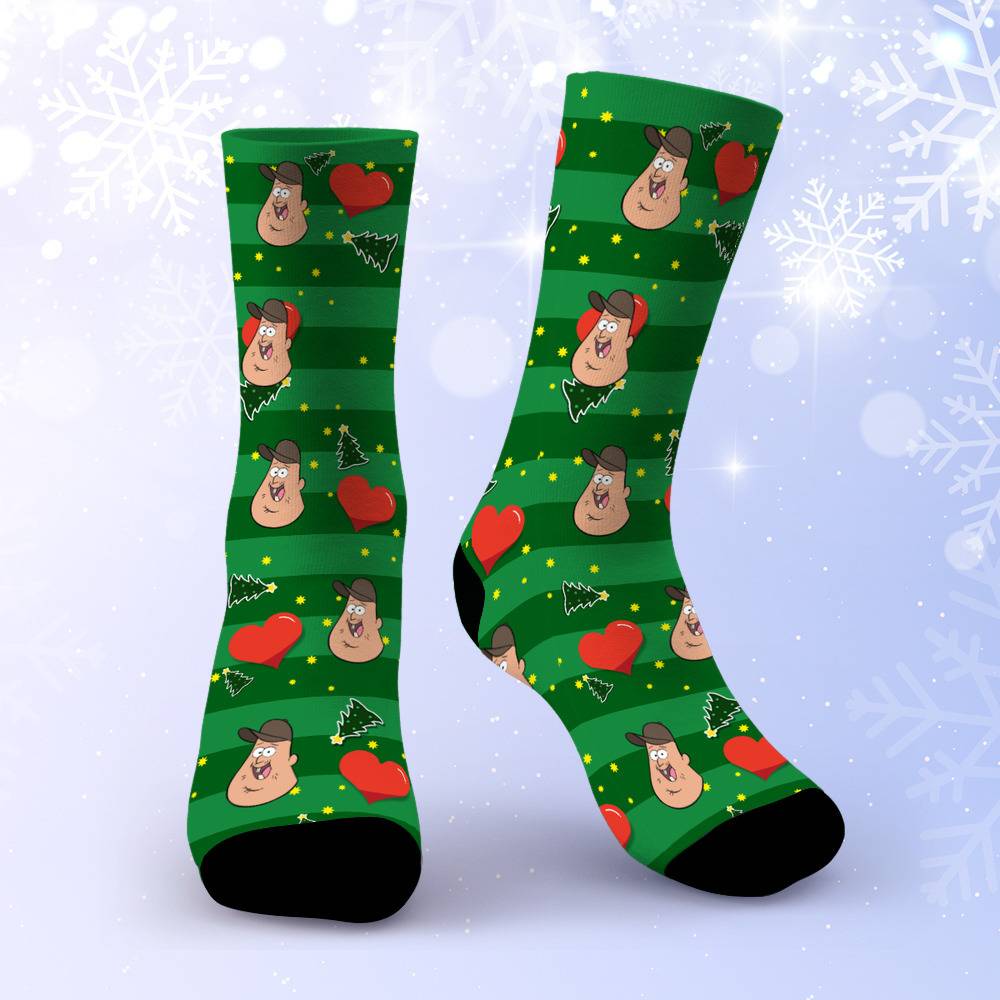 Gravity Falls Socks Custom Photo Socks Christmas Socks Heart Stripe Print